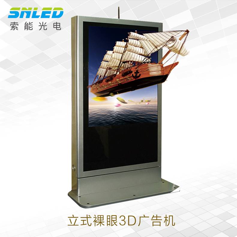 本裸眼3D立式廣告機技術,其擺設裝置為直式方式呈現,系采用視光柵技術。此技術可使影像時空之淚細致清晰顯示,色彩飽和,真實呈現。立式廣告是一種全新的顯示器管理設備,短暫的時間內即可吸引眾人目光,從訊息提供至廣告刊登符合當代流行的觀看元素,無需配帶立式眼睛,視覺震撼更令人仿佛身臨其境,視覺沖擊不可而喻。