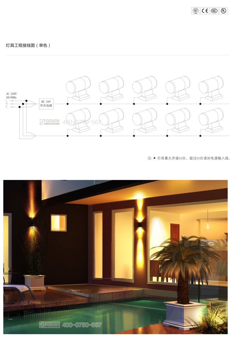 l注:燈具最大并接50臺,超過50臺請加電源輸入線。