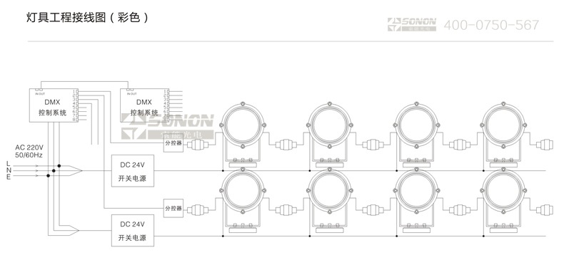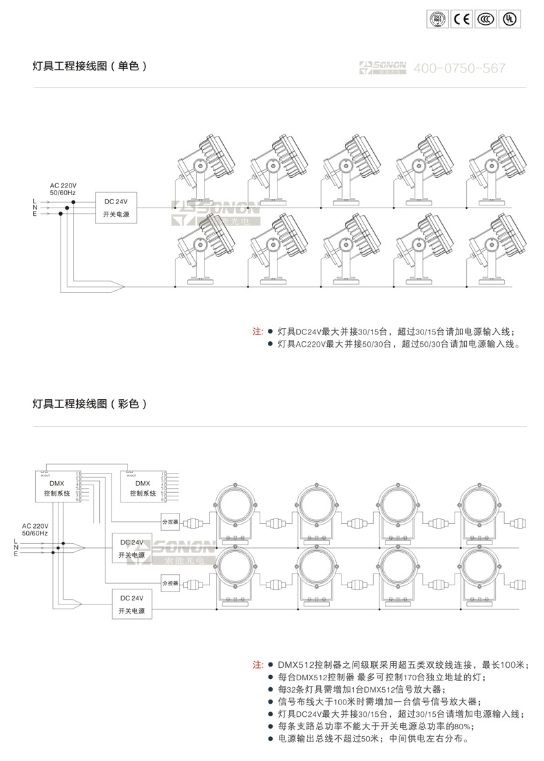 l燈具DC24V最大并接30/15臺,超過30/15臺請加電源輸入線。